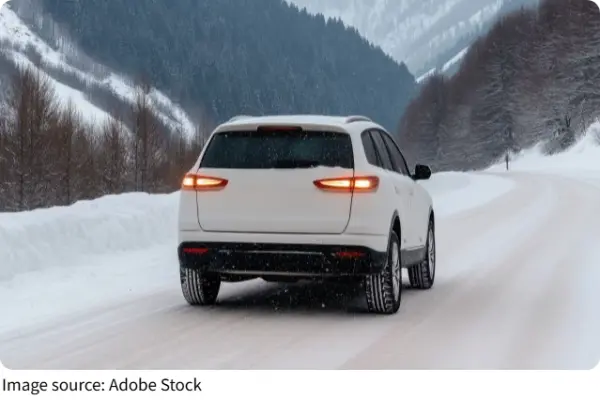 Speed is the first thing that needs to change when weather turns rough. Wet or icy roads reduce tire grip, which increases stopping distance. Even modern safety systems can't overcome basic physics.