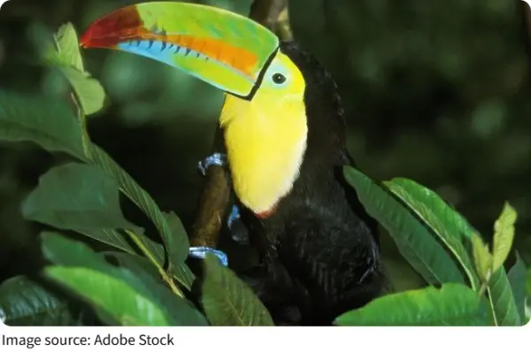 One of the most striking features of the Keel-billed toucan’s beak is its bright color. We might think these colors come from pigments, but that’s not the full story.